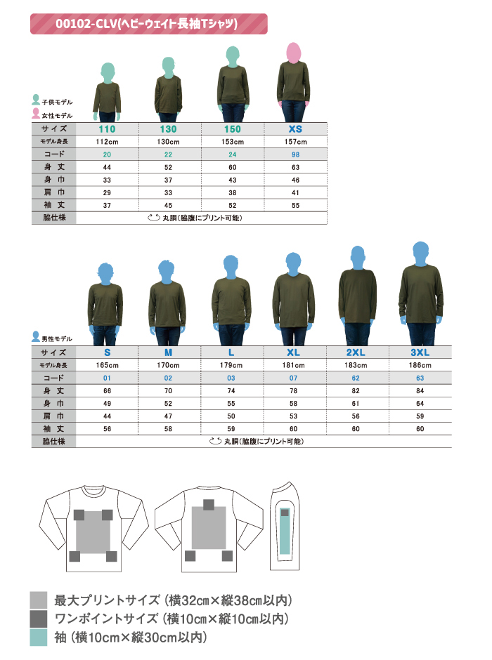 子供(110~150)から大人(XS~3XL)までの10サイズ・12色展開。