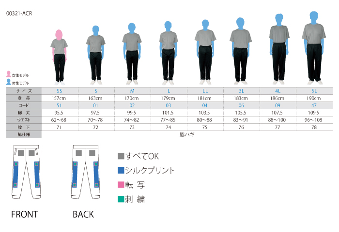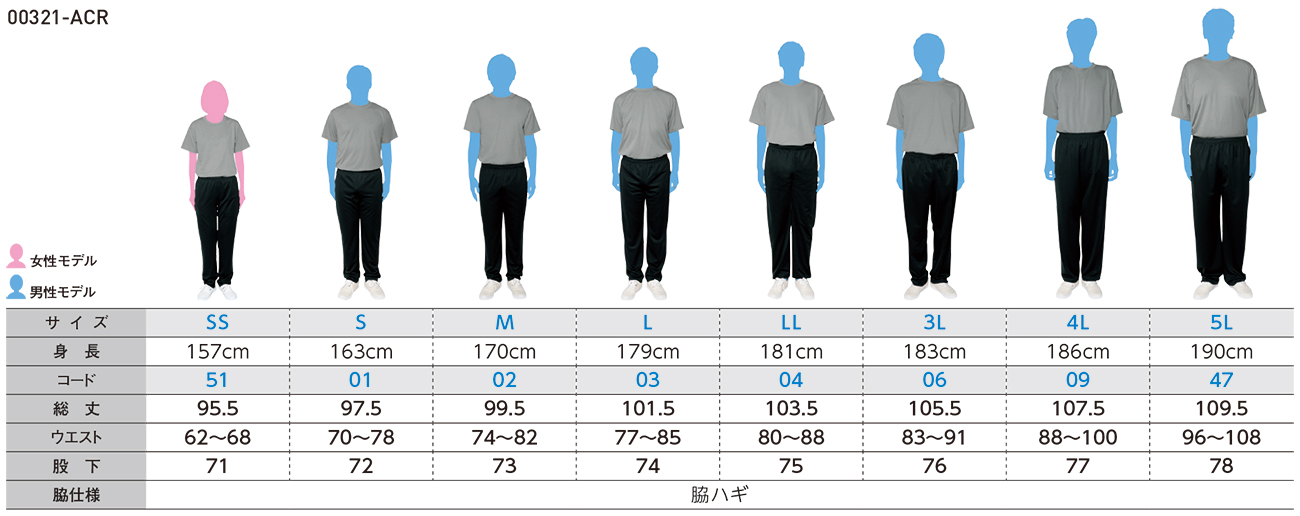 SS~5Lまでの8サイズ・5色展開