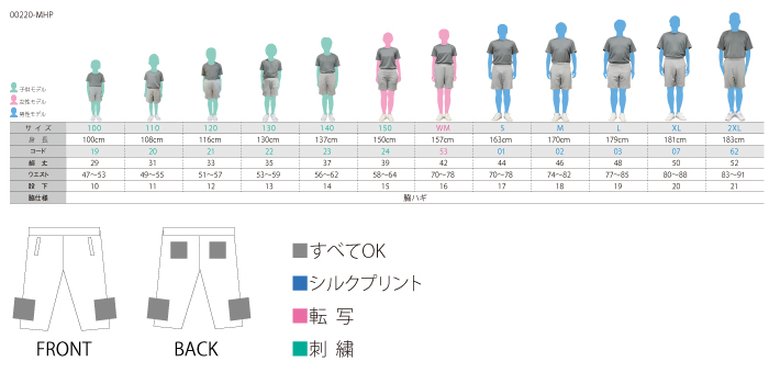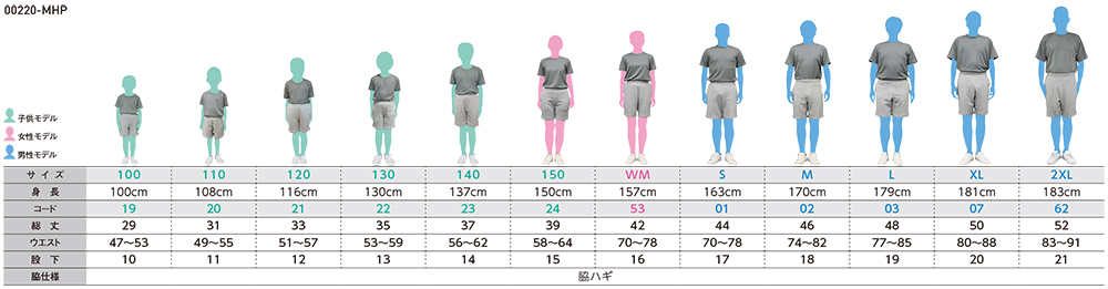 100から2XLまでの12サイズ・15色展開