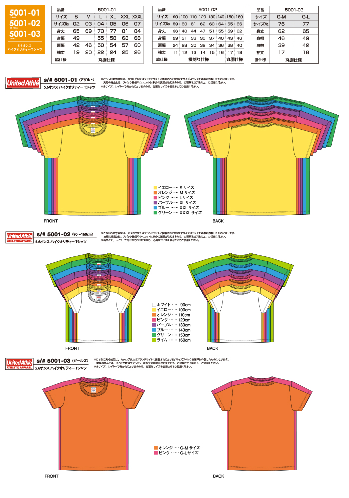 ・アダルト:S~XXXLまでの6サイズ、54色展開