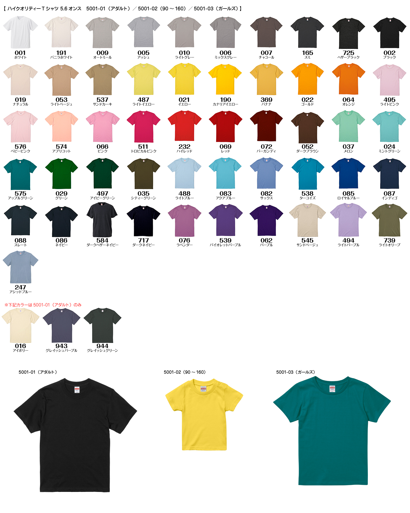 ※下記カラーは5001-01(アダルト)のみ